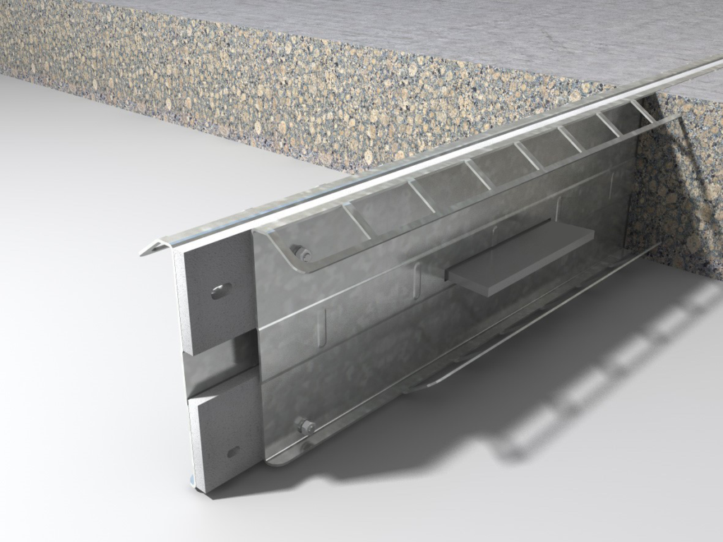 - La pletina de cuadrícula (patente solicitada) asegura firmemente la junta en el concreto a lo largo de toda la longitud.