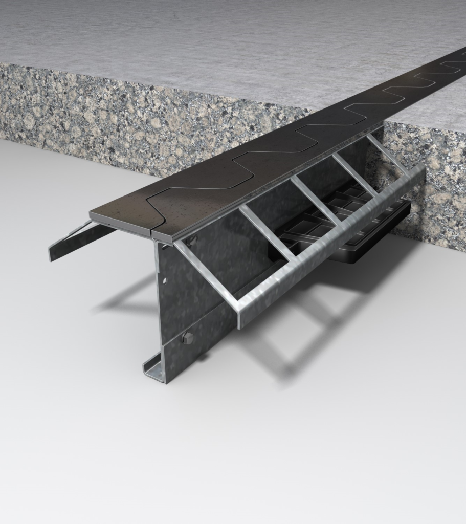 El diseño inteligente incorpora dos placas de acero una encima de la otra. A medida que el hormigón se contrae, las dos placas se deslizan entre sí en diferente dirección. Sin embargo, el espacio en el medio de la junta nunca queda expuesto, evitando que los residuos se acumulen en el espacio.
